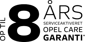 Køber du en elbil fra Opel, kan du forlænge garantien i op til 8 år ved at få den serviceret hos et autoriseret Opel-værksted. Det er tryghed, der følger dig hele vejen. Opel Care gælder alle elektriske personbiler fra Opel, som er indregistreret efter 1. november 2025.